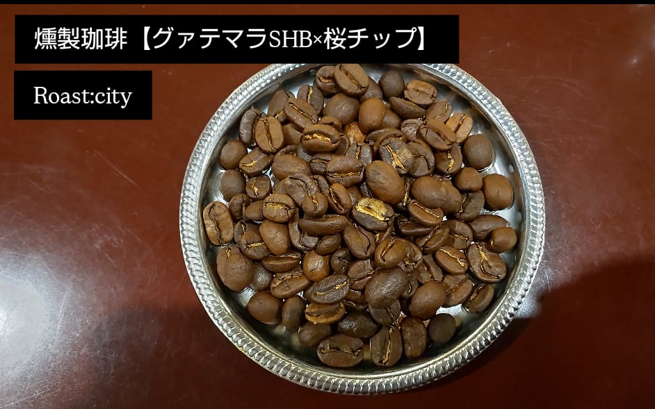 グァテマラSHBをシティローストで焙煎し、桜チップにて燻製処理を施しております。